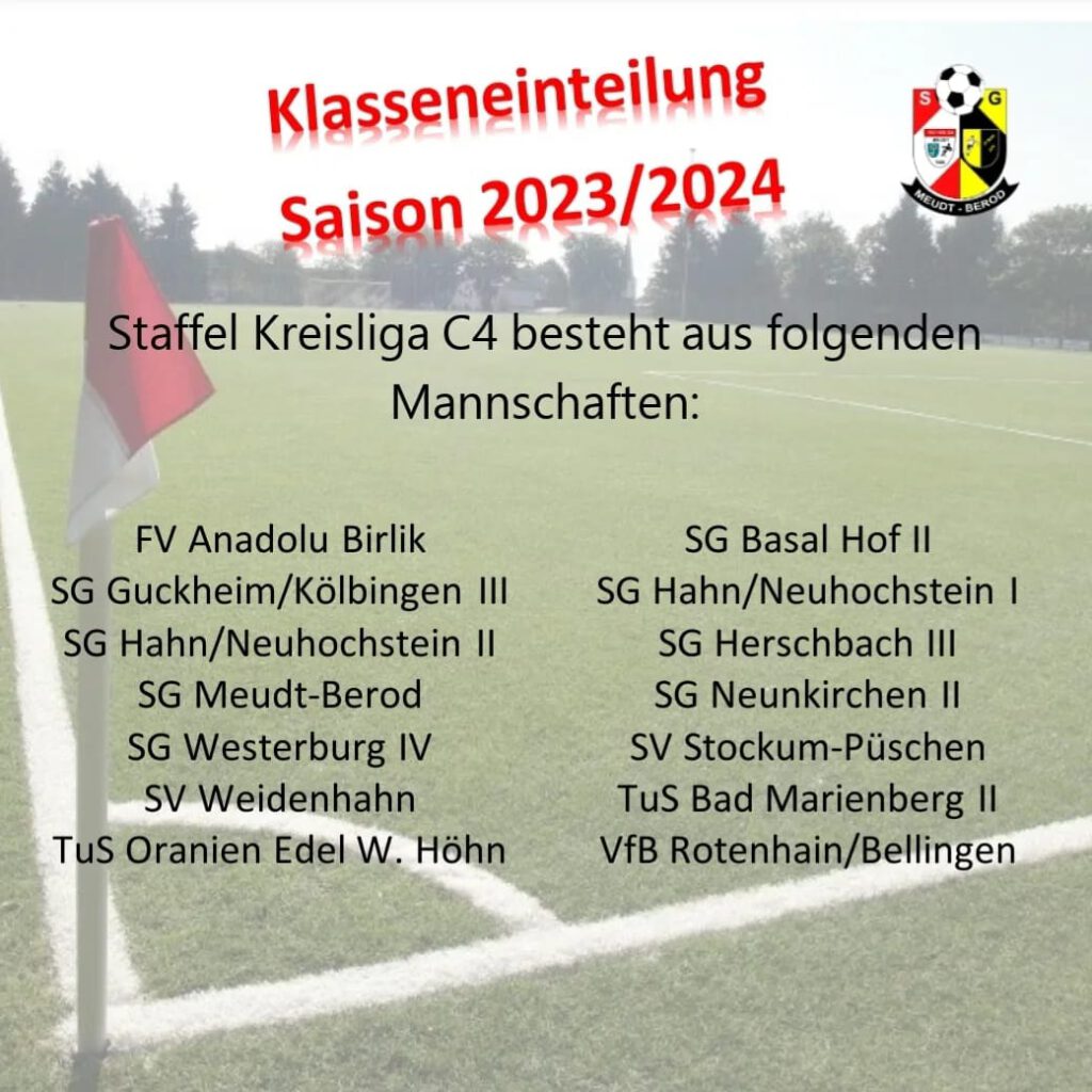 Wir finden uns (vorbehaltlich der endgültigen Feststellung seitens des FVR) in der Kreisliga C Staffel 4 wieder. Neben bereits bekannten Mannschaften, freuen wir uns aber auch auf viele für uns neue Teams, gegen die wir antreten dürfen.