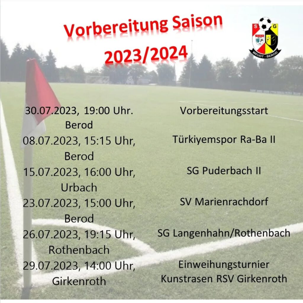 Unsere Vorbereitung auf die neue Saison beginnt bereits diesen Freitag. Neben vielen Trainingseinheiten kommen auch 4 Testspiele und ein Turnier hinzu. Bereits am 1. August Wochenende starten wir mit den Pflichtspielen – wir spielen in der ersten Runde des Rheinlandpokals. Die Saison beginnt dann eine Woche später.