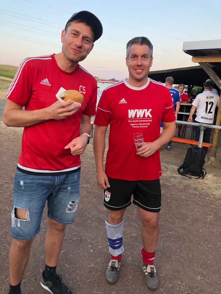 Für das Turnier bleibt uns nur noch unseren Spielern Turhan Baylan, Christian Krekel sowie Torsten Stendebach zu danken, die den Gegner Mogendorf/Baumbach in deren beiden Spielen gegen Neuhochstein und gegen unser Team unterstützten. Der Einsatz ist nicht selbstverständlich. Auch den AH der DJK Elbingen/Hahn vielen Dank für die Einladung zum Turnier und die gute kulinarische und flüssige Bewirtung. Wir verbrachten noch ein paar gesellige Stunden in Elbingen.