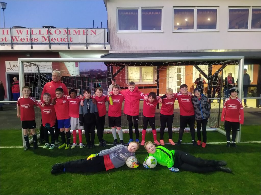 Am 18.03.26 trat unsere E-Jugend in Meudt im Rahmen der Platzierungsstaffel gegen die JSG Ahrbach lll an. In einem abwechslungsreichen Spiel geriet unser Team gleich zu Beginn in Rückstand (0:1, 5. Minute), bevor Liam kurz darauf ausgleichen konnte (1:1, 6.). Kurz vor der Pause fiel jedoch erneut ein Tor für die Gäste (1:2, 22.). Unsere Mannschaft kam in der zweiten Halbzeit nicht so gut ins Spiel, Ahrbach zog mit 1:3 (28.), 1:4 (30.), 1:5 (35.) bis auf 1:6 (38.) davon. Erfreulicherweise war die Moral unseres Teams noch intakt und mit den Treffern von Anton zum 2:6 (39.), 3:6 (46.) und 4:6 (49.) sowie dem 5:6 durch Tim (50.) kam eine starke Reaktion. Auf beiden Seiten hätten weitere Treffer fallen können, so etwa nach einem wunderschönen Pfostenschuß nach Ecke unserer Mannschaft – weiter so!