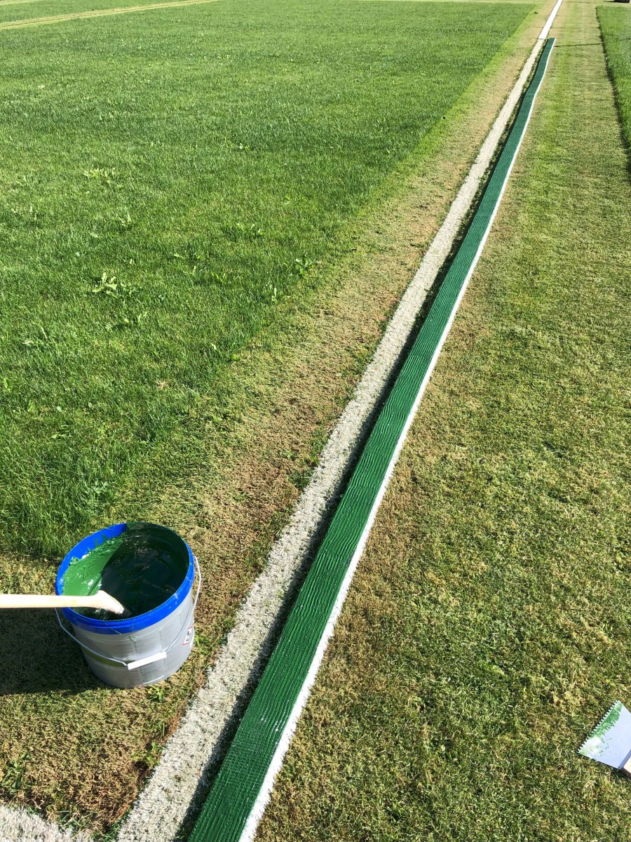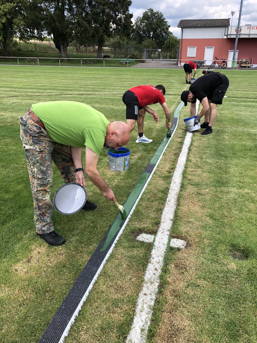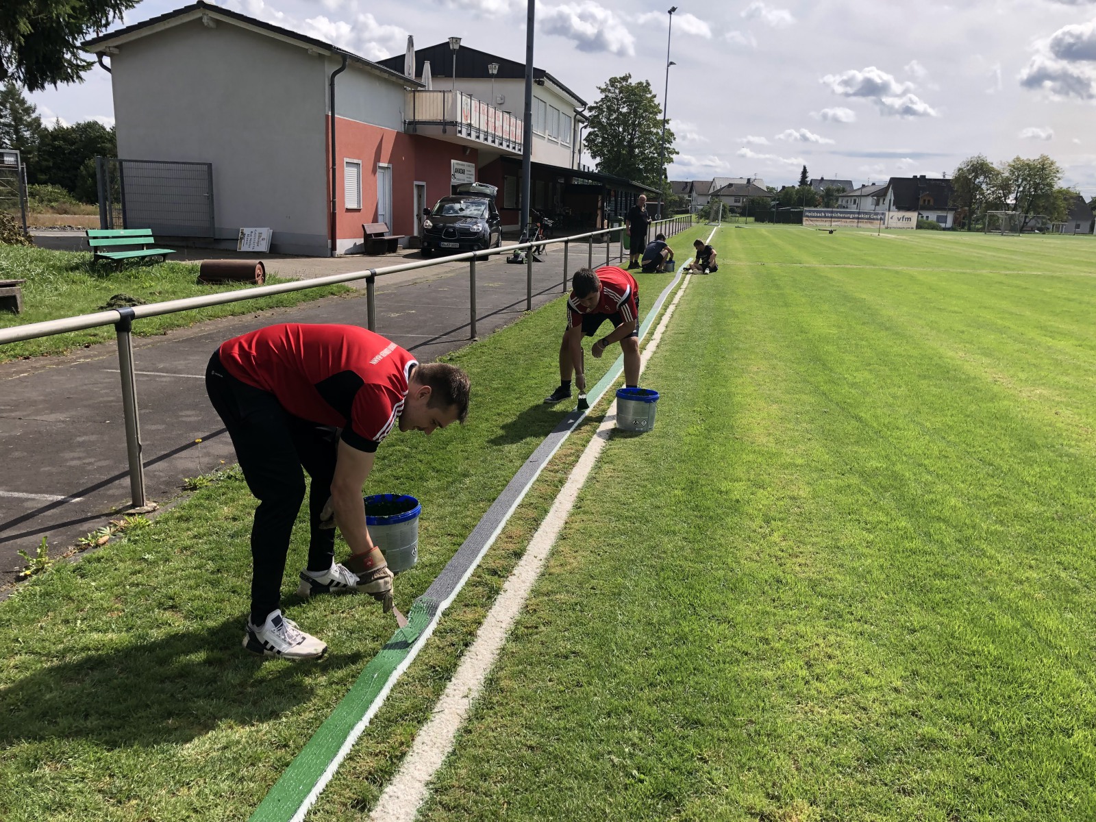 Es geht voran mit den neuen Linien auf dem Sportplatz in Meudt. Nur noch der Mittelkreis und die Bögen für den 16-Meter Raum. Danach kommt noch Sand drauf und dann erstrahlt der Platz in neuem Glanz!