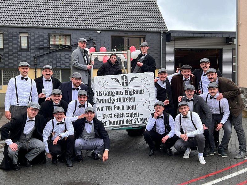 Die Spieler der SG Meudt/Berod haben am diesjährigen Karnevalszug in Meudt unter dem Motto „Als Gang aus Englands Zwanzigern treten wir vor Euch heut‘ – lasst euch sagen – hier kommt der SV Meudt“ teil. Eine tolle Unterstützung, für den leider etwas kurz geratenen Zug in diesem Jahr.