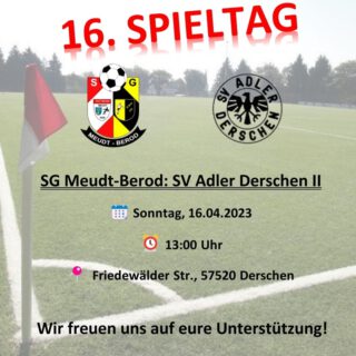 16.04.2023 – SV Adler Derschen 2 – SG Meudt/Berod 0:6 (0:2) Am vergangenen Sonntag war man zu Gast bei der Zweitvertretung des SV Adler Derschen....