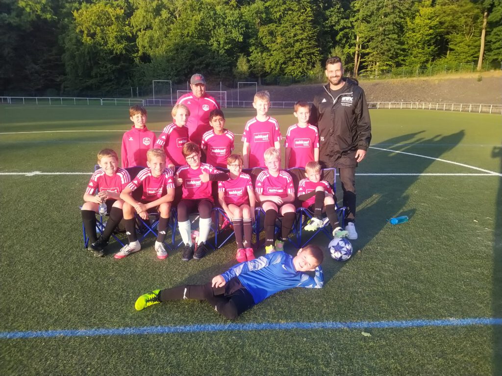 Am 12.09.25 trat unsere E-Jugend in Siershahn gegen die JSG Siershahn-Selters an. Über weite Strecken zeigte unsere Mannschaft ein sehr erfreuliches Gesicht und spielte engagierten Fussball. Durch Nachsetzen im gegnerischen Torraum gelang Ben das 0:1 (4. Minute) und mit schönem Schuss von der linken Strafraumgrenze ins lange Eck auch das 0:2 (11.). Noch vor der Pause erhöhte Leandro zum 0:3 (17.). Kurz nach der Pause verkürzten die Gastgeber zum 1:3 (27.), dem Maximilian jedoch das 1:4 (29.) folgen ließ. Danach leistete sich unser Team eine Schwächeperiode, die zum 2:4 (31.) und 3:4-Anschlusstreffer (32.) durch Siershahn-Selters führte. Sehr zur Freude von Mannschaft, Betreuern und unseren Fans konnte diese Phase erfolgreich beendet werden, indem wieder energischer gegen den Ball gegangen wurde und Alessio mit Fuß (44.) und Kopf (50.) für den 3:6-Endstand sorgte.
